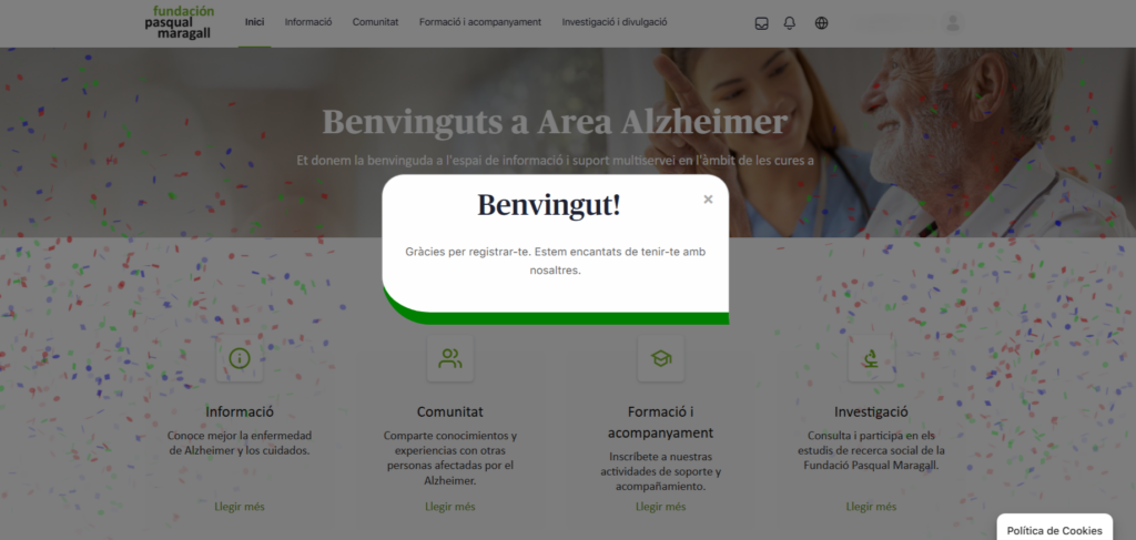 3. Benvingut/da a Area Alzheimer! A la pàgina principal trobaràs informació de tots els recursos i continguts que tens a la teva disposició.